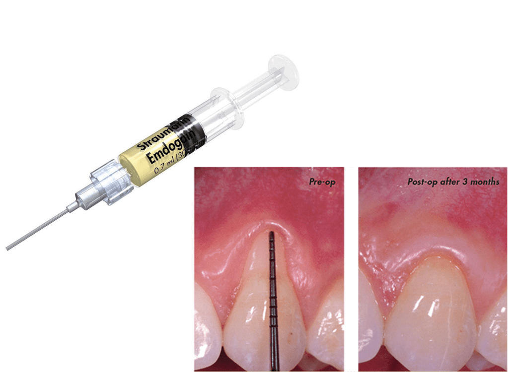 Straumann® Emdogain® è un mix di proteine della matrice dello smalto che, applicate su una superficie pulita della radice del dente, formano una matrice extracellulare che stimola le cellule e i processi fondamentali per la rigenerazione parodontale.